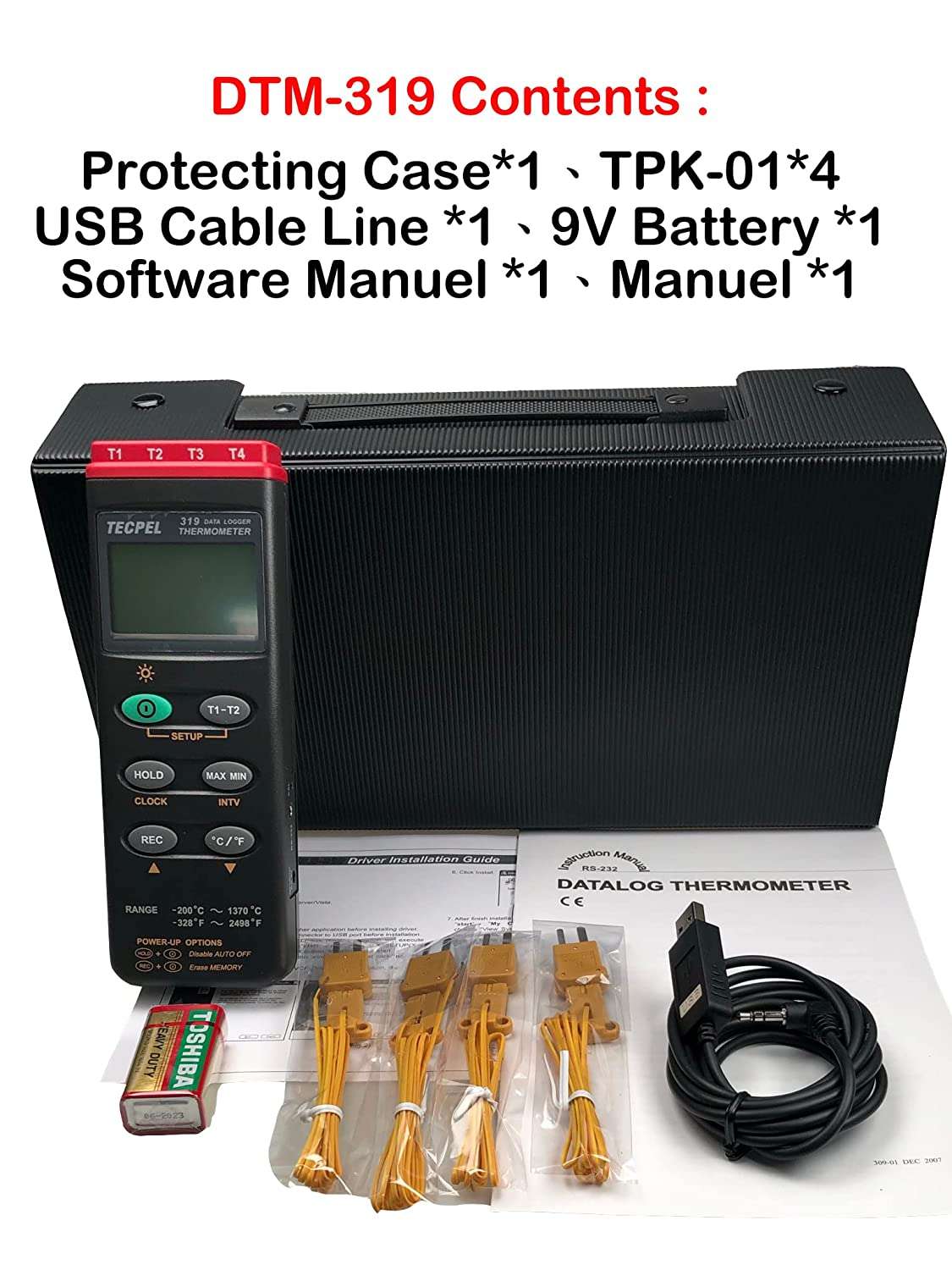 - Option Accessory: AC adaptor( DC 9V), Special Type K thermocouples
