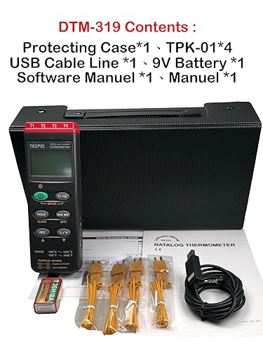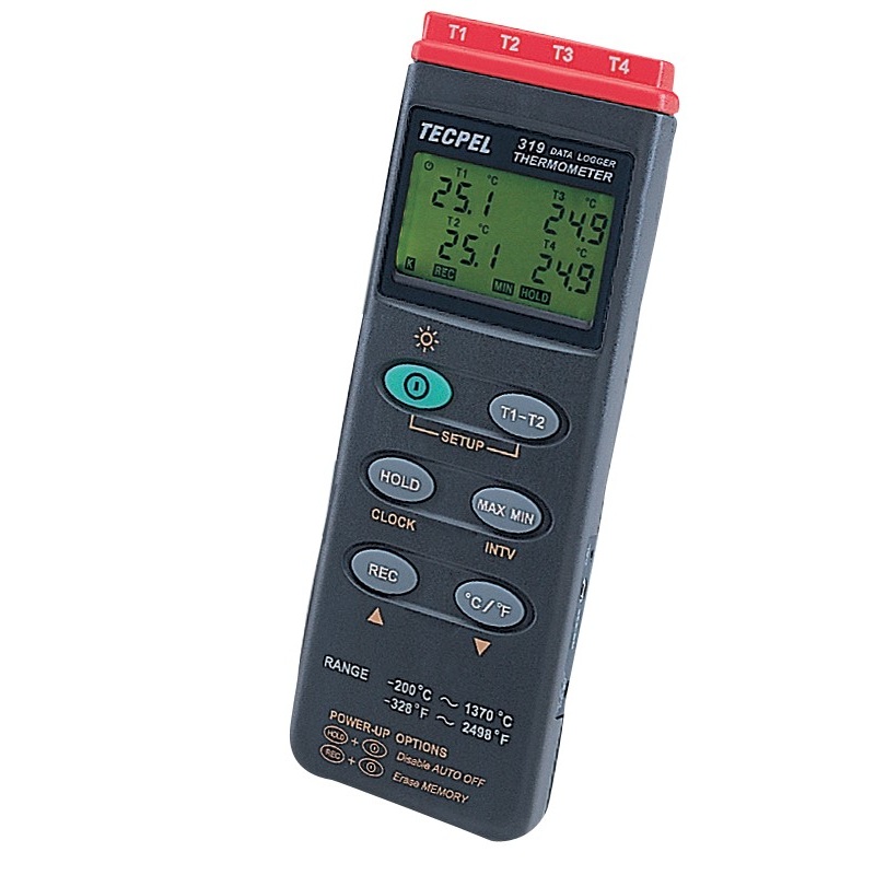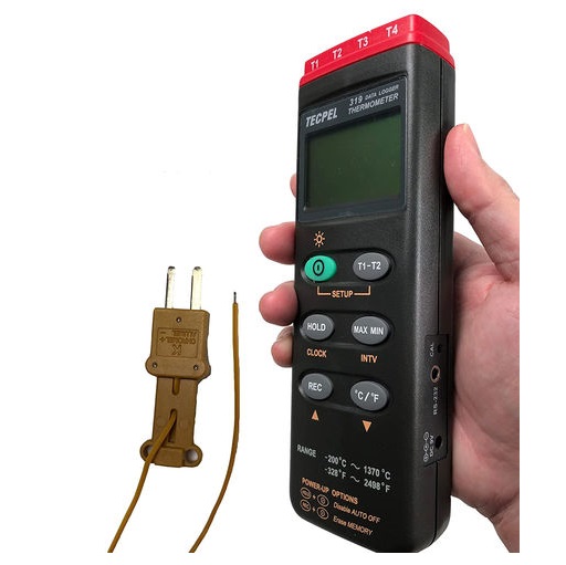 - A temperature logger with four channels, compatible for K type of thermocouples, with 4 K-type thermocouples and with software included being able to download the stored information to a PC and graph it in Excel or directly with its software of, the thermometer data logger.
