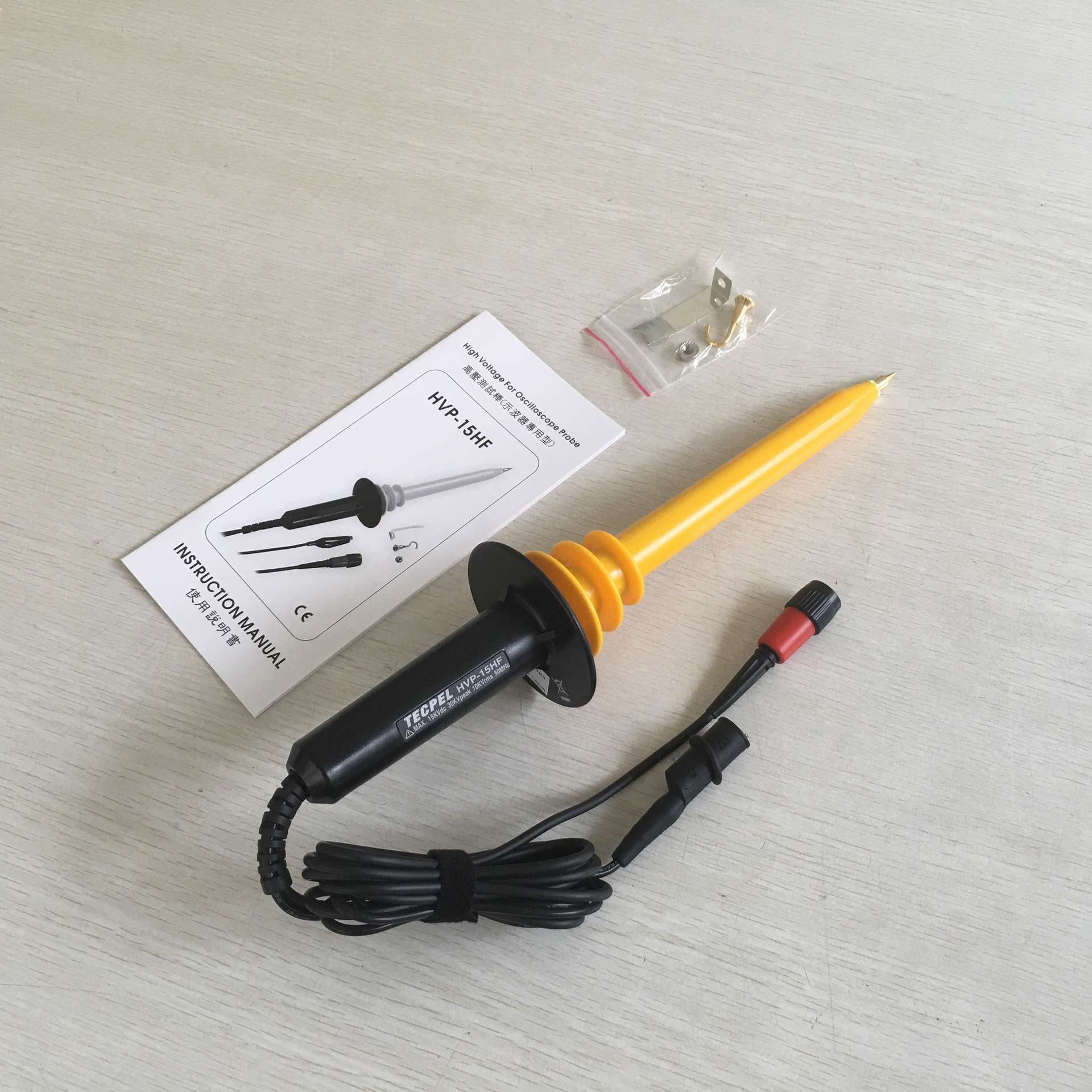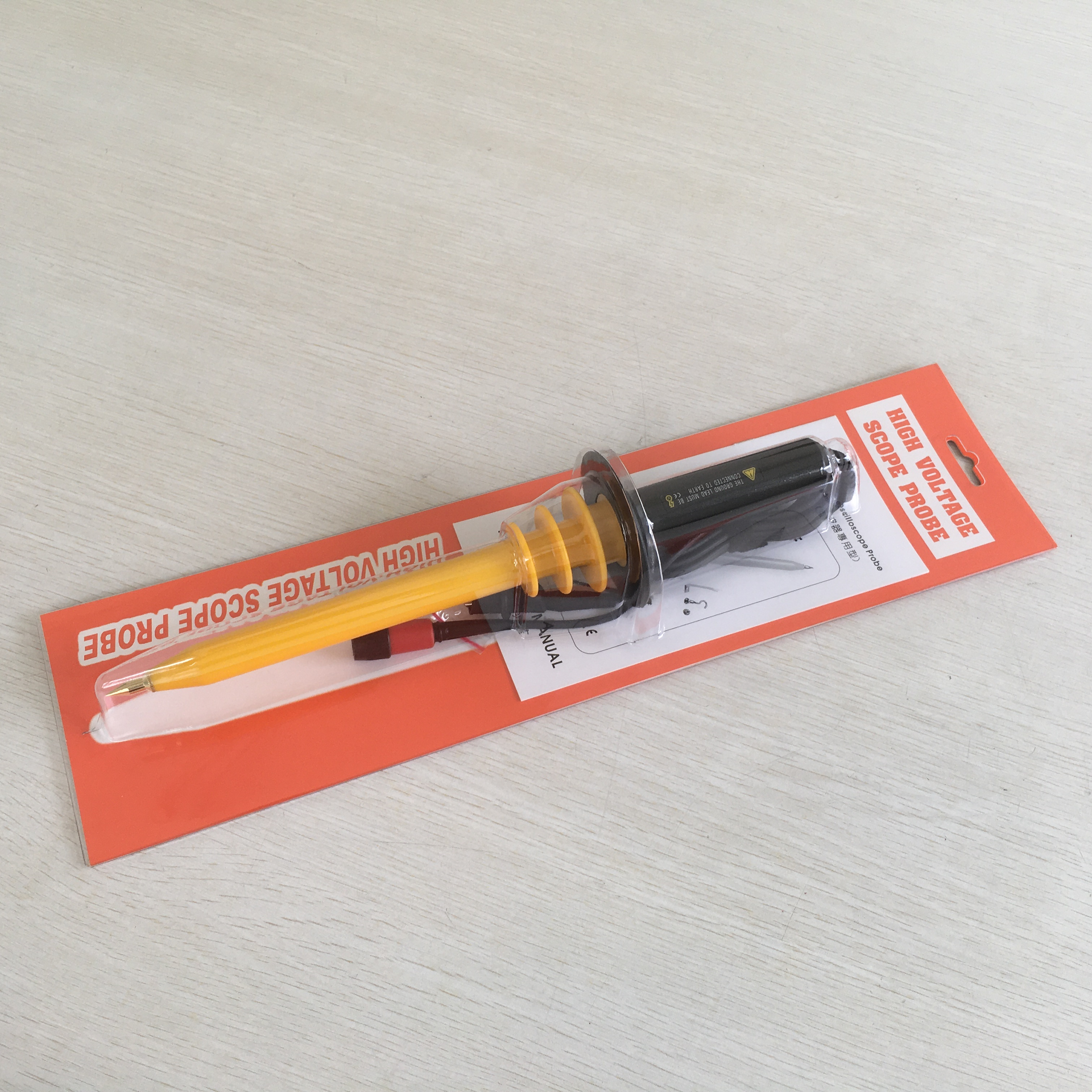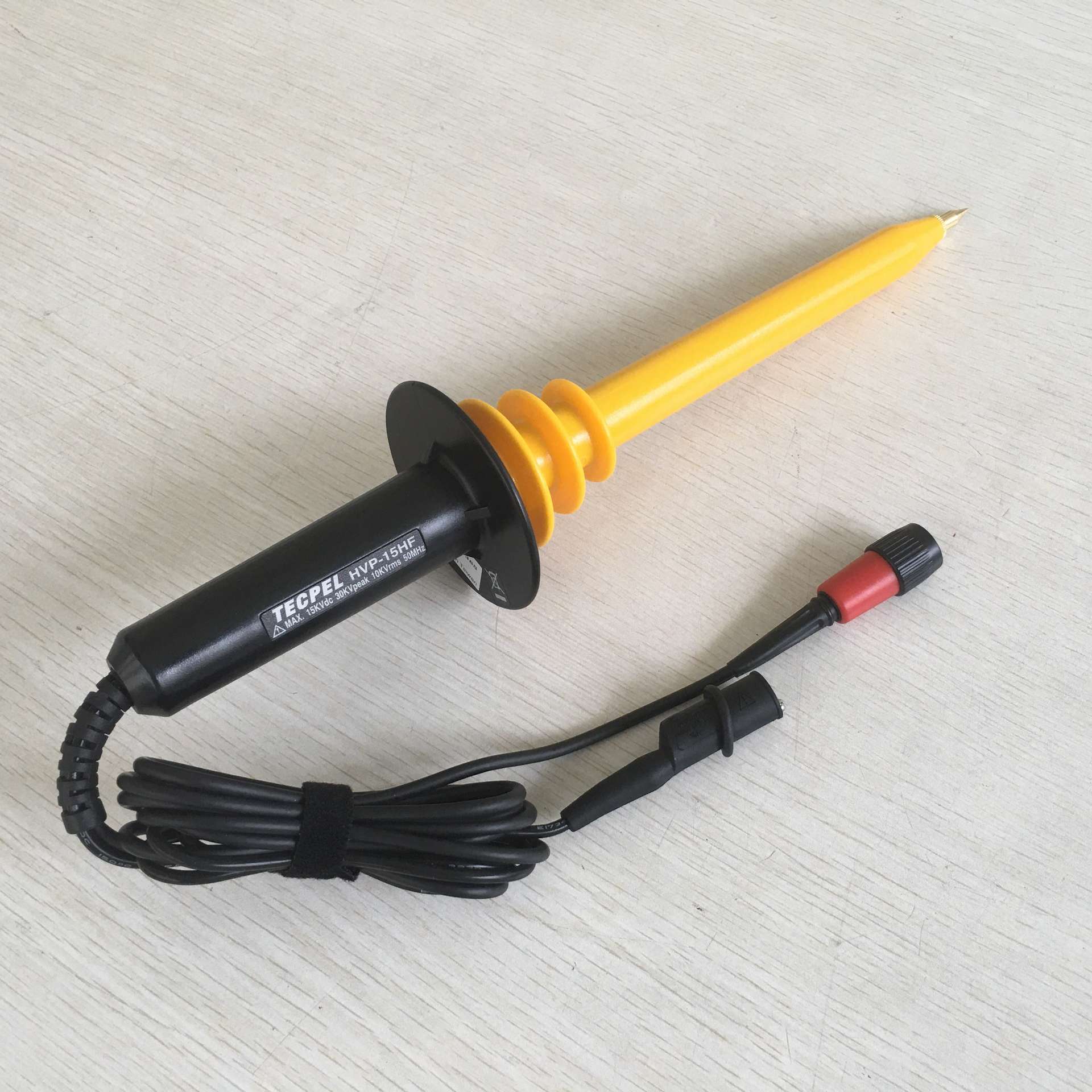 HVP-15HF 40MHz High Voltage Probe The HVP-15HF is a high-voltage probe suitable for measuring voltages up to 10kV DC or 20kV AC. With an input impedance of 100MΩ, there will be no large currents flowing through the probe. The probe is designed to allow the user to measure high voltages as safely as possible. The probe is CE tested and approved. With the BNC connector of the HPV-15HF, it can be connected to almost all oscilloscopes. This makes it widely applicable to engineers. Via an optional BNC to the banana connector, the probe can also be used with a multimeter. The best choice for your measurement.