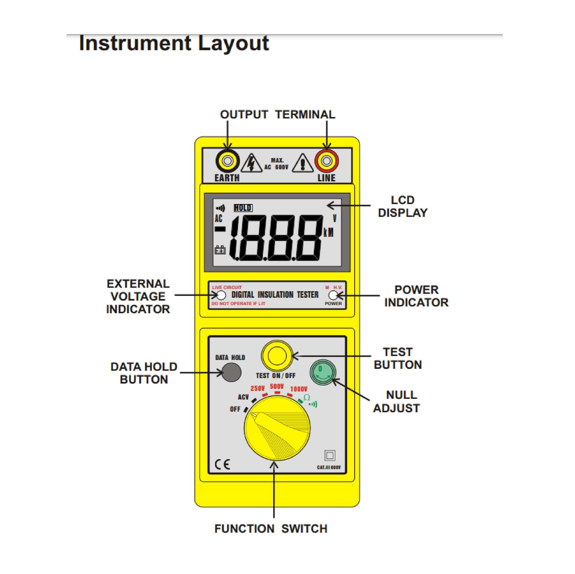 - 1. Test Range DCV : 250V/500V/1000V
