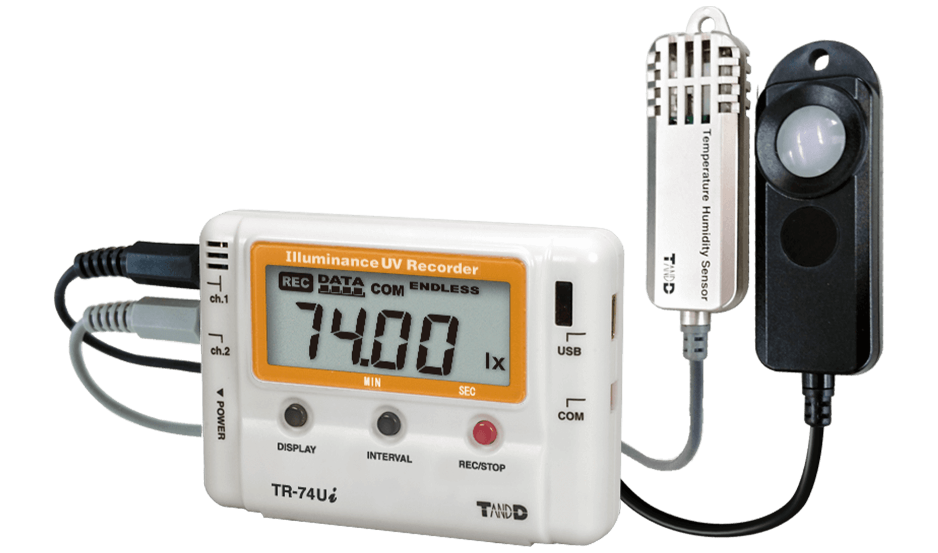 TR-74Ui Illuminance UV Recorder is a data logger designed to simultaneously measure and record four items: Illuminance, Ultraviolet Light (UV), Temperature and Humidity. This versatile data logger can be applied in a wide range of applications, from business to personal use.