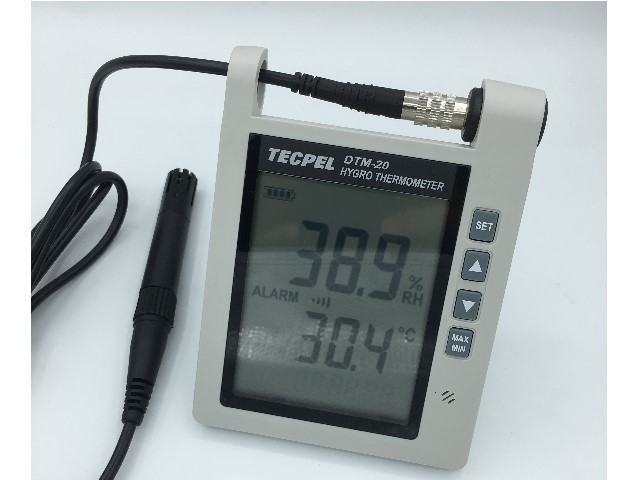 TECPEL is proudly introducing new DTM-20 Hygro Thermometer which is a multi-functional hygrometer with the features of measuring humidity, temperature, dew point and Hi-Low Limit audio alarm function. This unit can be simply put on the desk or mounted on the wall for environment monitor. Optional high precision sensor +/- 2% RH is available for customer's choice (DTM-20RP32)