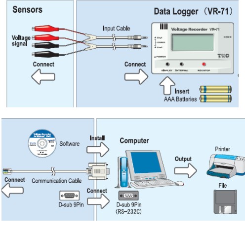 It can record common signals, such as 1-5V/4-20mA as well as output signals from a variety of sensors.