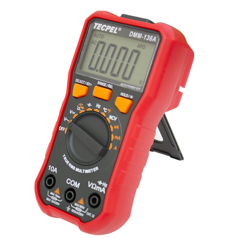 DMM-136A can test DCV, ACV, DCA, ACA, resistance, capacitance, frequency, NCV, duty cycle, temperature, diode and continuity.